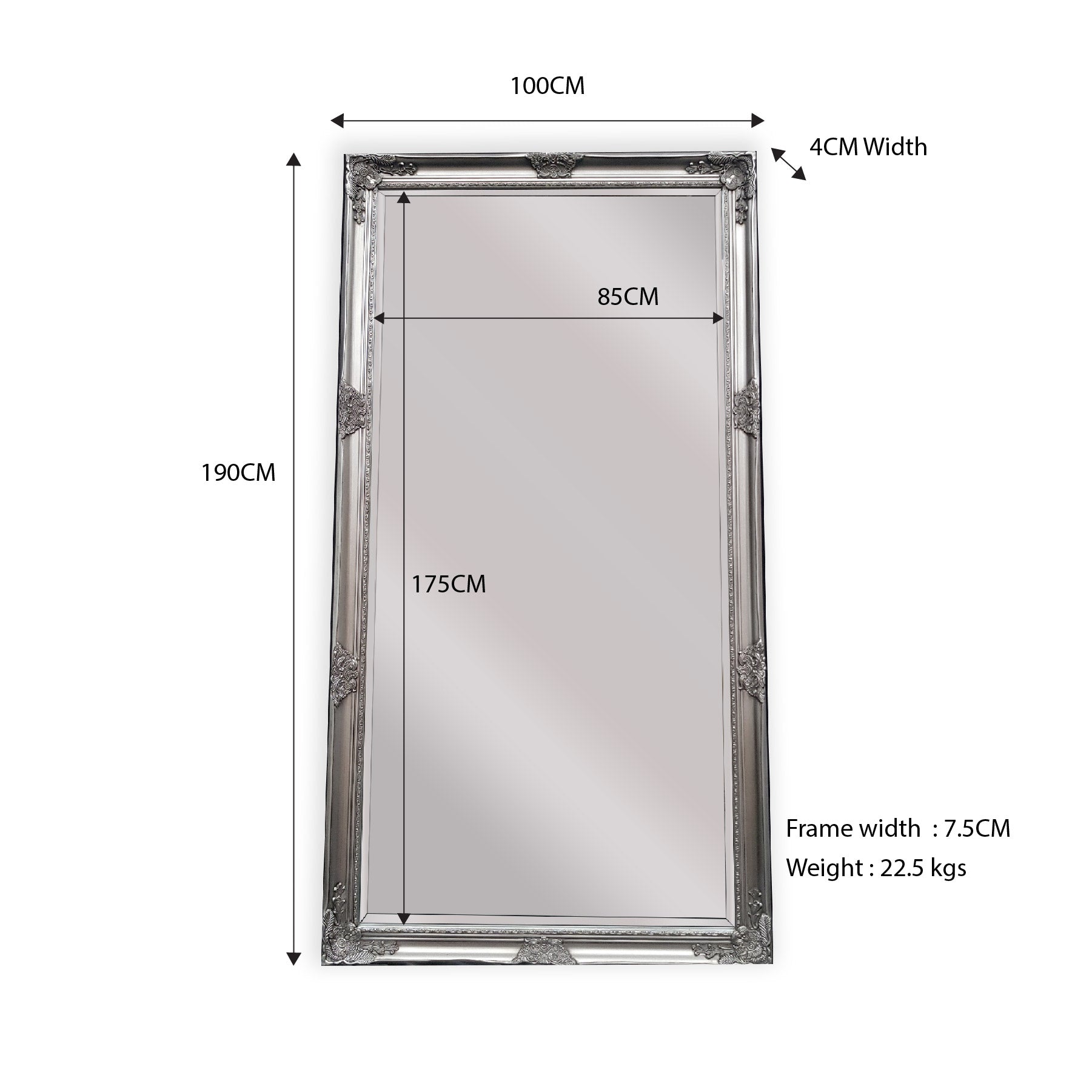 French Provincial Ornate Mirror - ANTIQUE SILVER- X Large 100cm x 190cm